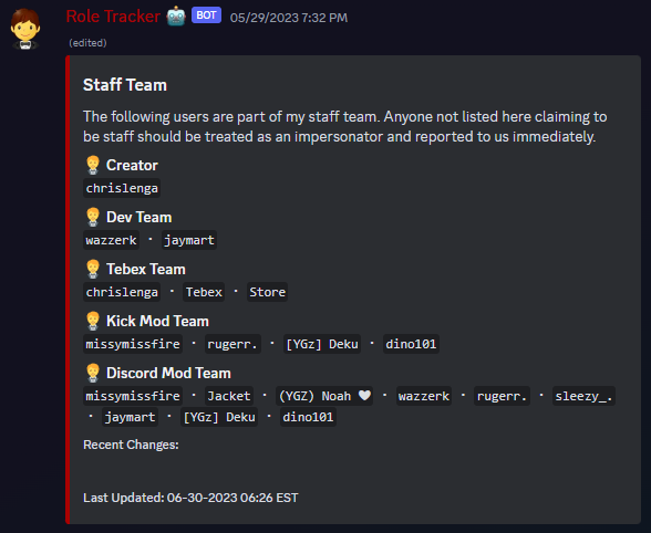 Role Tracker was an extremely popular bot that grew to several hundred servers within weeks and was originally verified by Discord. Changes to Discord's permissions and bot verification program, along with upstream Python library changes at the time, made it impractical to continue under the original architecture, and the project was shelved. Its core idea has since been reborn as RostaBot, a more evolved and secure successor that preserves the original's role-tracking strengths while addressing platform changes.